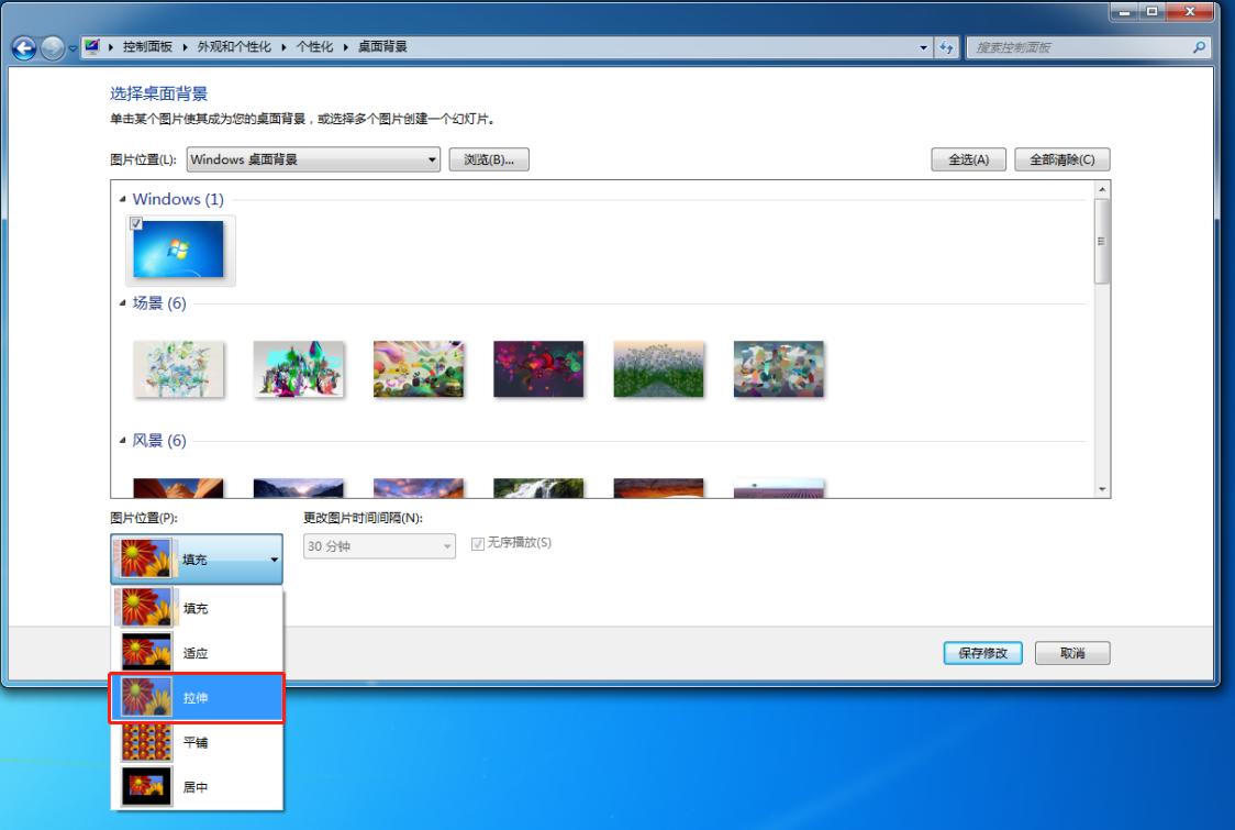 在(zai)“圖片位置(zhi)”選項中(zhong)選擇“拉(la)伸”
