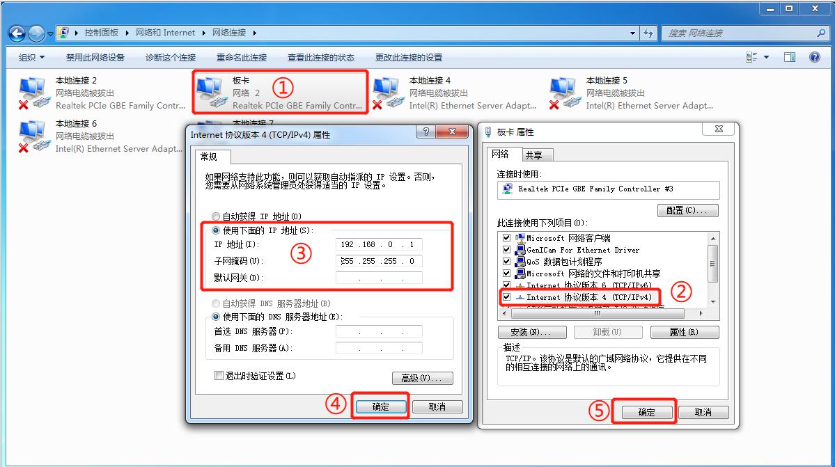→右鍵點開“運動(dong)(dong)控制卡”的網絡屬性,按(an)以下順序修改運動(dong)(dong)控制卡的IP地址