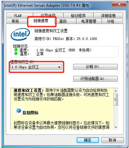 →將“鏈(lian)接速度”選項卡中(zhong)的“速度和雙(shuang)工”屬性(xing),修改為“1.0 Gbps全雙(shuang)工”