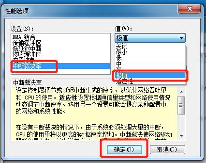 →將“中斷(duan)裁決率”的值修改為“極值”,點擊(ji)“確定”