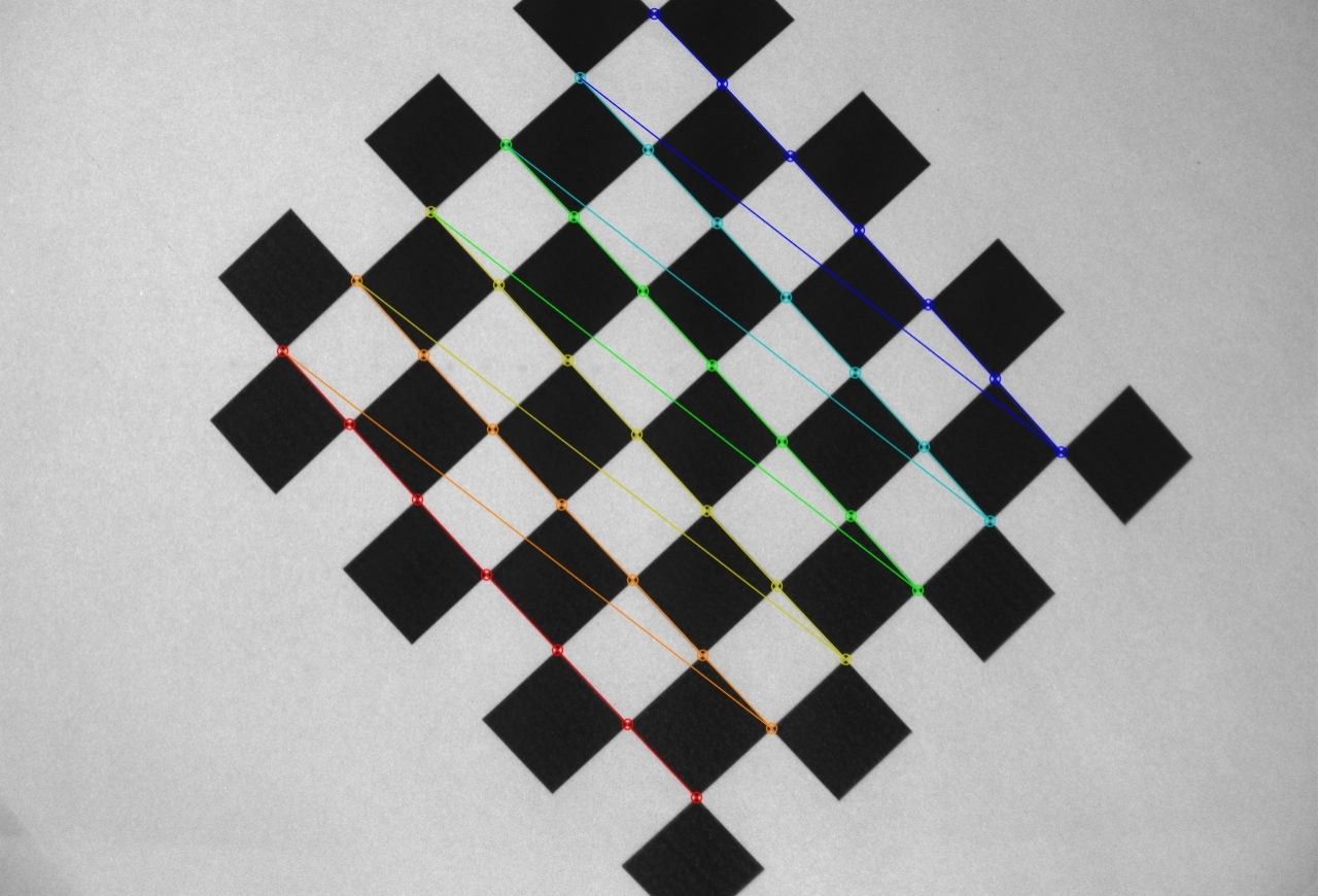 工程師們(men)一般用棋(qi)盤(pan)格標定(ding)板來解決這個問(wen)題。當相機從不(bu)同角度拍攝棋(qi)盤(pan)格照片后,算法就能(neng)反向推(tui)算出畸變參(can)數(shu)。