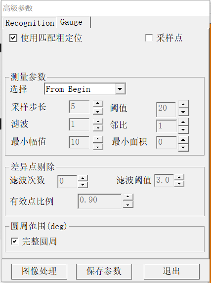 匹(pi)配作為粗定位使(shi)用,圓形擬合(he)模(mo)塊根(gen)據粗定位自動(dong)改變位置;對于目標比較固定的(de)情況,可不采(cai)用粗定位功(gong)能。