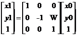 水(shui)平(ping)(ping)鏡像中(zhong),原(yuan)圖中(zhong)的(de)(x0,y0)經過水(shui)平(ping)(ping)鏡像后,坐標變成了(le)(x0,W-y0),用(yong)數(shu)學公式表(biao)達就是(shi):
