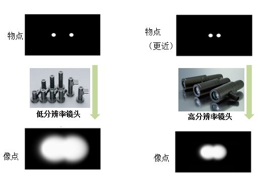能被分辨開來的兩個物點之間的最小距離,稱為鏡頭的物方分辨率,