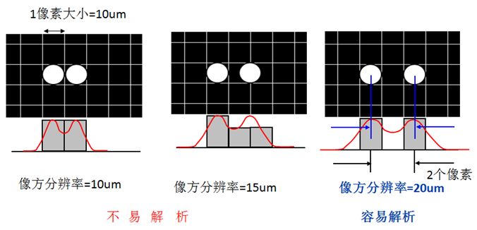 客戶通常要求的“精度”,實際上是指的一個像素能夠代表物方多少大小,這時候只需要用相機像素尺寸除以鏡頭的倍率就可以了(精度=像(xiang)素大小÷光學(xue)放大倍(bei)率(lv),或者用視野(ye)÷像素(su)數量,結果是一樣的)。比如,你用了5MP的相機,像素為2.2m,搭配了0.5x的鏡頭,此時精度即2.2m÷0.5=4.4m,測量一根25m的線寬就需要5~6個像素,畫面每跳動一個像素,測量結果就變化4.4m。