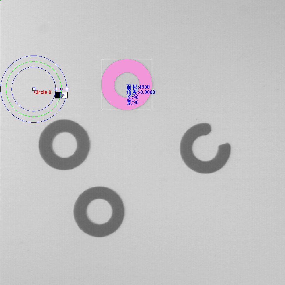 當記錄圓(yuan)半(ban)徑的基準值后,勾選該選項,可在圖像(xiang)處(chu)理過程中檢查圓(yuan)的半(ban)徑。半(ban)徑容(rong)差單位為像(xiang)素。