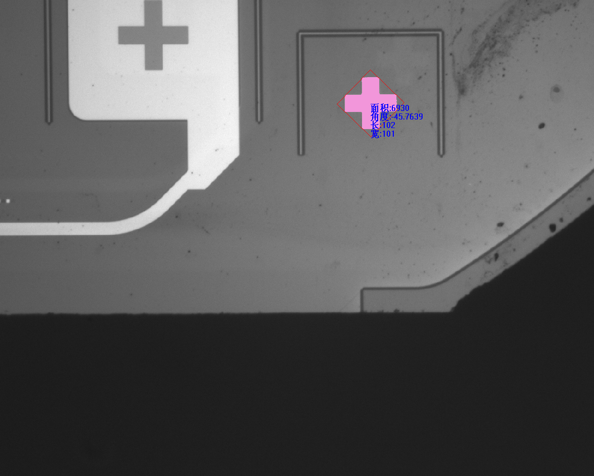 【角度】該斑點最小外(wai)接矩形的角度,圖(tu)中紅(hong)色(se)矩形所(suo)示