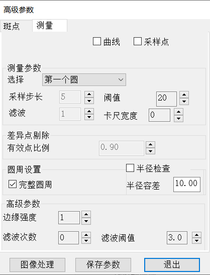 這兩個參數是組合使用的(de),它(ta)們起到剔除差異點的(de)作用,提高(gao)擬合圓的(de)準確(que)性。