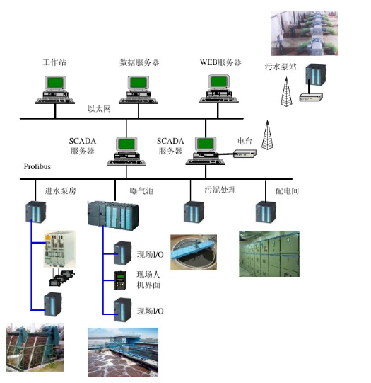 SCADA的英文是Supervisory Control And Data Acquisition,譯成中文就是監控與數據采集。從其名稱可以看出,其包含兩個層次的功能:數據采集和監控。下圖所示為一個市政工程SCADA系統。