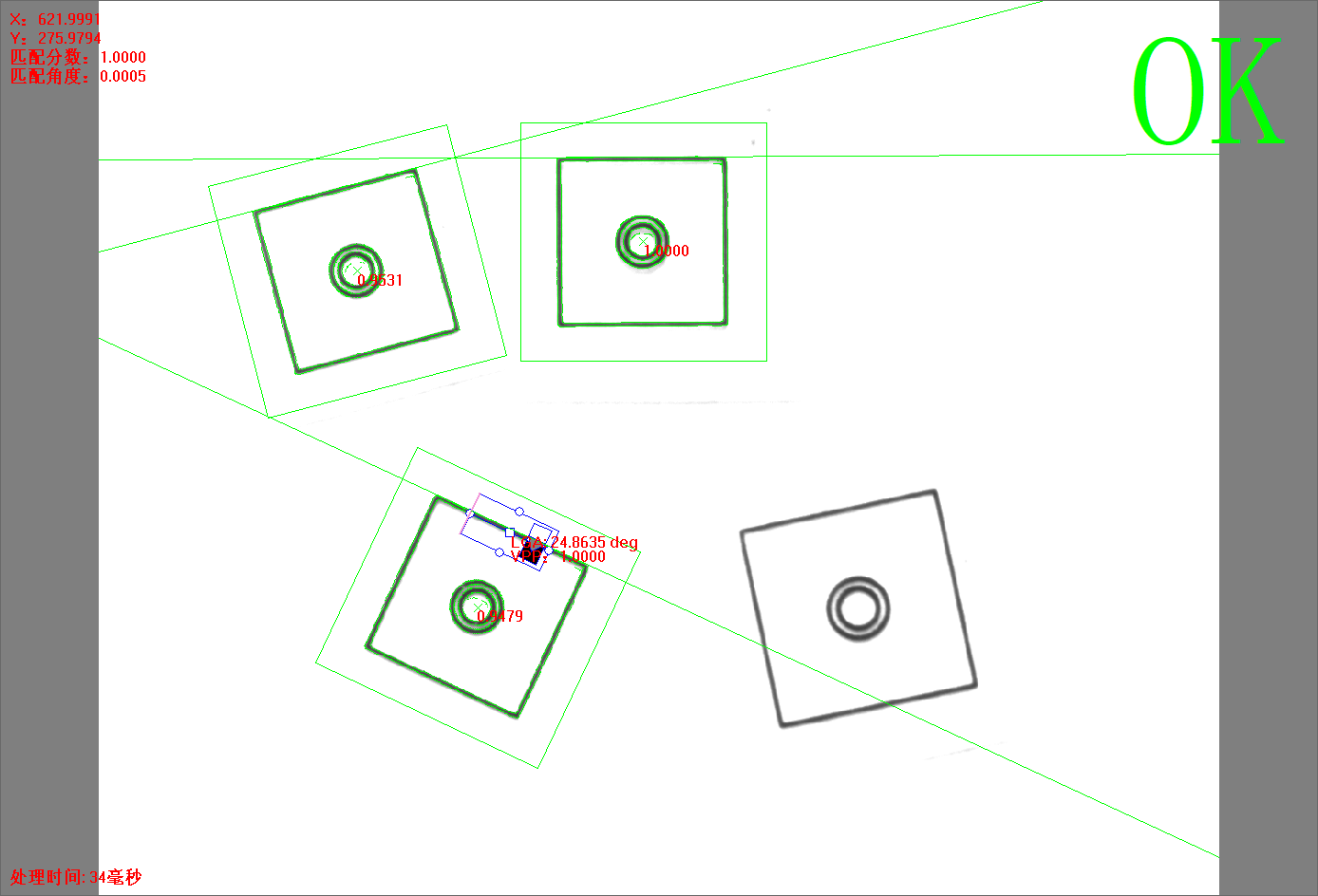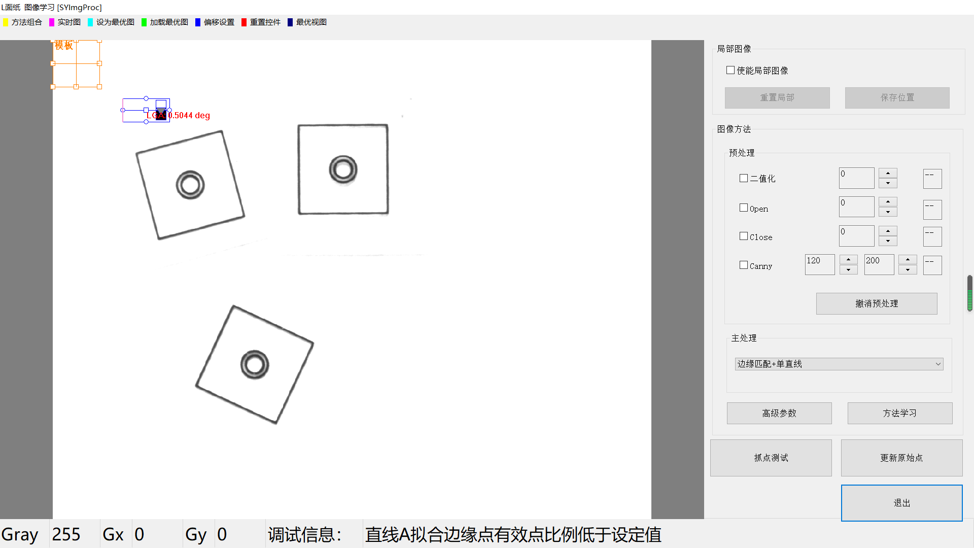 點擊【方(fang)法學習】后,邊緣匹配+單直線(xian)方(fang)法的所有信息將(jiang)被保存,并自動進行圖像(xiang)處理,相關的信息將(jiang)顯示。