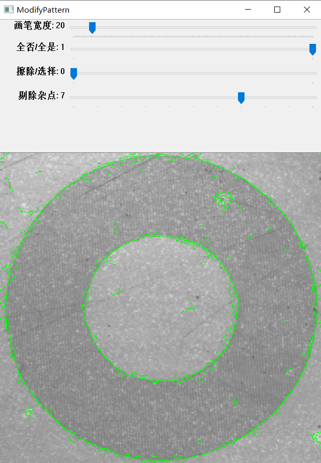 當圖像的質量(liang)較差(cha)時,邊緣模糊產生(sheng)大量(liang)的雜點(dian);從而(er)增加了搜索(suo)的時間,同時影響(xiang)了搜索(suo)的準確性(xing)。通過調整【剔(ti)除(chu)(chu)雜點(dian)】去(qu)除(chu)(chu)大部(bu)分的干擾點(dian),優化(hua)了模板(ban)的輪廓信息。