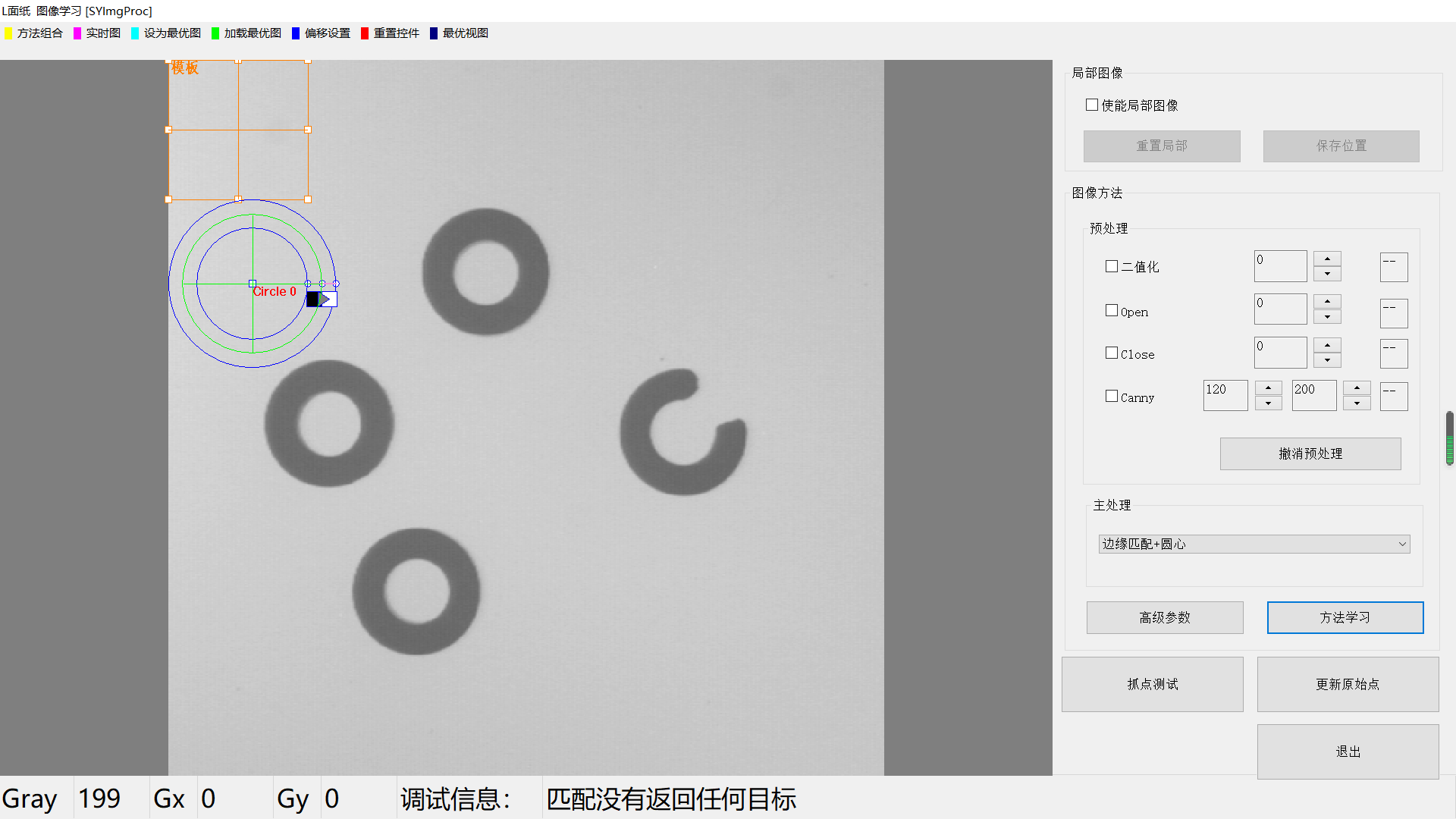 點擊【方法(fa)學習】后,邊(bian)緣匹配(pei)+圓心方法(fa)的(de)所有信(xin)息(xi)將被保存,并自動進行(xing)圖像處(chu)理,相關的(de)信(xin)息(xi)將顯示。