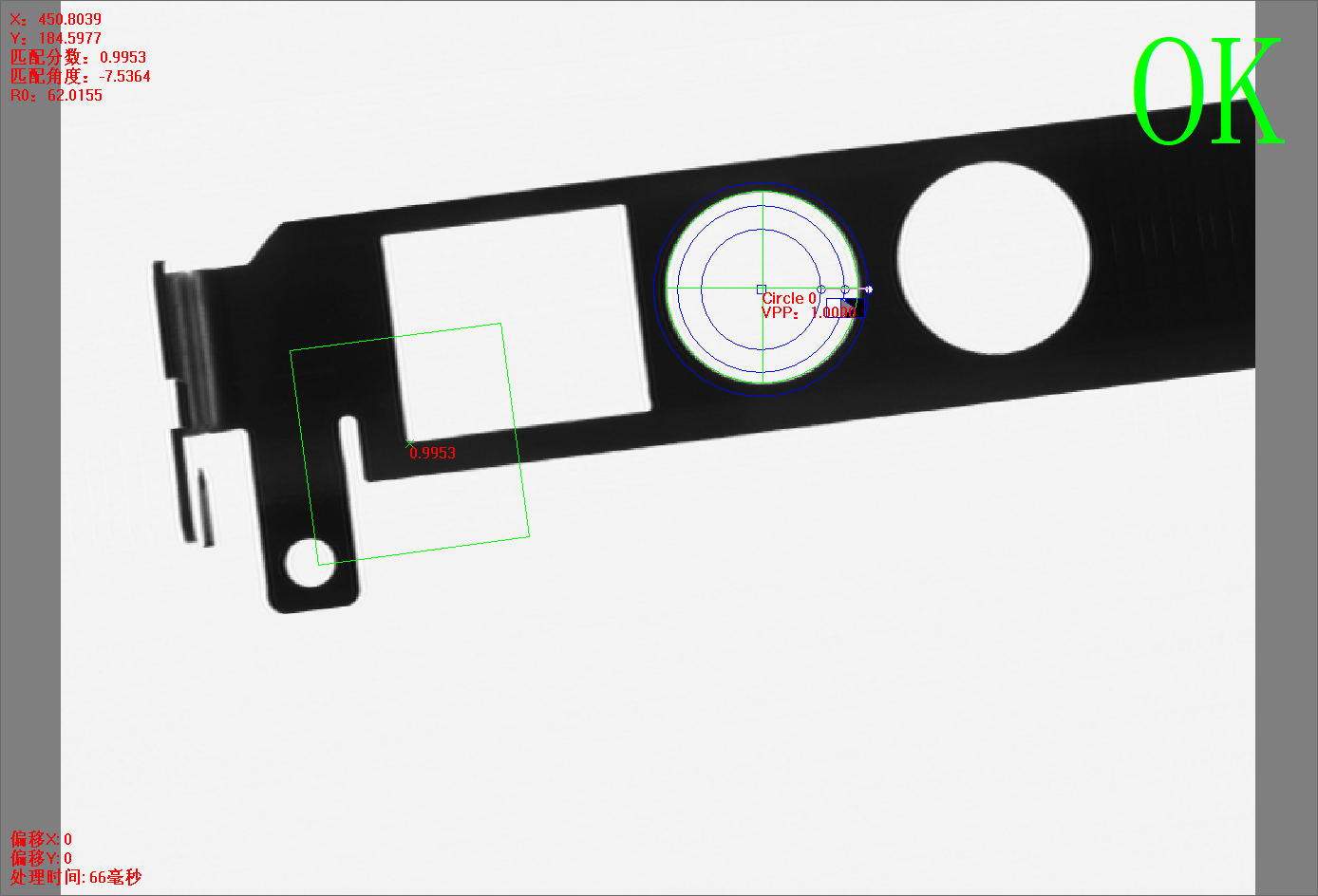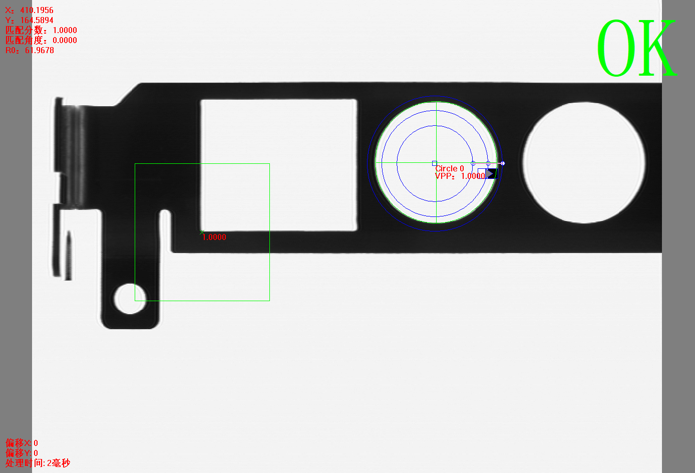 匹配作為粗(cu)定(ding)(ding)位使用(yong),圓工具跟隨(sui)粗(cu)定(ding)(ding)位自動改(gai)變位置;對于目標(biao)比(bi)較(jiao)固(gu)定(ding)(ding)的情(qing)況,可不(bu)采用(yong)粗(cu)定(ding)(ding)位功能。