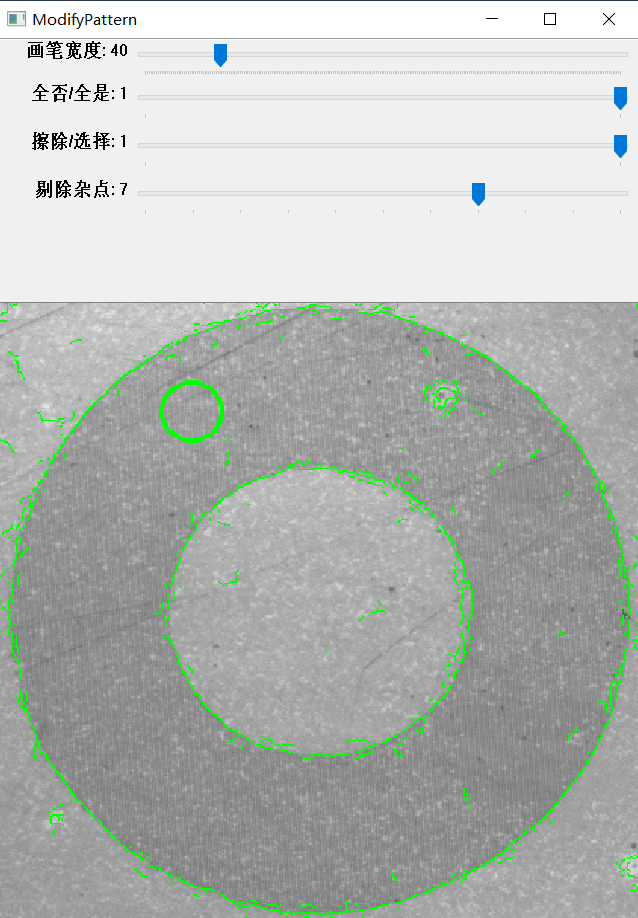 當圖像的(de)(de)質量(liang)較差(cha)時(shi),邊緣模糊產生大(da)量(liang)的(de)(de)雜(za)點(dian);從而增加了搜索的(de)(de)時(shi)間,同時(shi)影響了搜索的(de)(de)準(zhun)確性。通(tong)過(guo)調整(zheng)【剔除雜(za)點(dian)】去(qu)除大(da)部分的(de)(de)干擾點(dian),優化了模板的(de)(de)輪廓信息。
