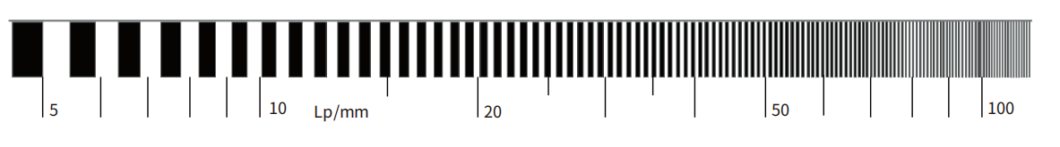 一般用像(xiang)方空(kong)間分辨能力來描述(shu)鏡(jing)頭的(de)解像(xiang)力,單位為每mm內的(de)黑(hei)白線(xian)對數(1p/mm);在搭配相(xiang)機使用時,鏡(jing)頭可分辨的(de)黑(hei)白線(xian)對寬度應(ying)小于(yu)或等(deng)于(yu)相(xiang)鄰兩個像(xiang)元尺寸;實際應(ying)用中(zhong)建議鏡(jing)頭的(de)分辨率要高于(yu)相(xiang)機的(de)分辨率。