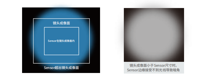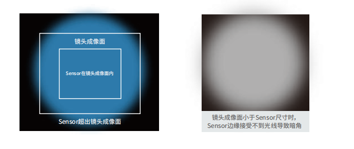 鏡頭最(zui)大(da)成像(xiang)(xiang)面(mian)指經過鏡頭后所成像(xiang)(xiang)的最(zui)大(da)范圍,當其小于(yu)圖像(xiang)(xiang)傳(chuan)感器尺(chi)寸時(shi),將出現暗角或黑(hei)邊。