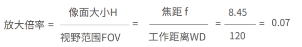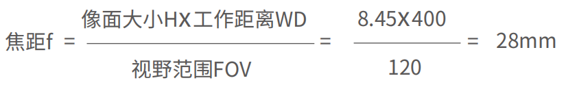 例(li):如(ru)選用500M相機,像素(su)數2448×2048,像元大(da)小3.45um,要求工作距離(li)在400mm以內,檢測范圍(wei)120×100mm,則(ze)鏡頭焦(jiao)距為多少?