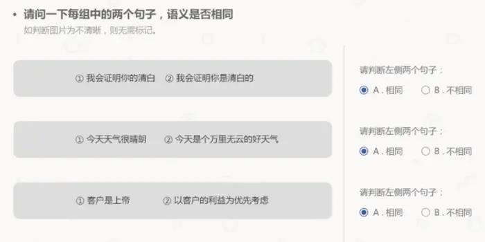 標(biao)注形式一(yi)般(ban)由算(suan)法人員制定,例如某些(xie)文本標(biao)注,問句(ju)(ju)(ju)識別,只(zhi)需(xu)要對句(ju)(ju)(ju)子進行0或1的標(biao)注。是問句(ju)(ju)(ju)就標(biao)1,不是問句(ju)(ju)(ju)就標(biao)0。