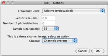 ImageJ 需要下載安(an)裝 插(cha)件,需要注(zhu)意(yi)的是只能測量豎直(zhi)傾斜邊(bian)緣,從左至(zhi)右(you)由黑變白的矩(ju)形框,具(ju)體選項設置參考(kao)如下(xia),sensor size單位是mm。