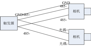 可連接標準RS485(RS422)輸入接口、光耦輸入接口(不建議)的相機。