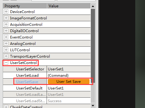 點擊UserSetControl選項下UserSetSave選項保存參數