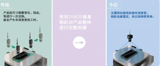 2.同一生產線上會生產多種產品,存在切換的麻煩。所用(yong)的相(xiang)(xiang)機分辨率較(jiao)低時(shi)(shi),要實現目標精(jing)度,就必須將拍攝視野變窄。所以(yi),在同一(yi)生產(chan)(chan)線上實施多項(xiang)生產(chan)(chan)時(shi)(shi),每進行一(yi)次切(qie)換,會同時(shi)(shi)產(chan)(chan)生相(xiang)(xiang)機布局變更的工(gong)時(shi)(shi)。但只要用(yong)2100萬像素相(xiang)(xiang)機對產(chan)(chan)品整體進行完整拍攝,就能(neng)(neng)免除(chu)切(qie)換的工(gong)時(shi)(shi),可固(gu)定(ding)使用(yong)相(xiang)(xiang)機,能(neng)(neng)夠構建起簡單的生產(chan)(chan)系統(tong)。此外(wai),可以(yi)統(tong)一(yi)進行多種(zhong)產(chan)(chan)品的檢測。