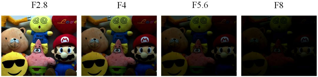 F.No數的大小(xiao)決定進(jin)入光(guang)(guang)學系(xi)統能(neng)量的多少(shao)。F.No越(yue)大,進(jin)入光(guang)(guang)學系(xi)統的光(guang)(guang)線越(yue)少(shao),畫面(mian)越(yue)暗;F.No越(yue)小(xiao),進(jin)入光(guang)(guang)學系(xi)統的光(guang)(guang)線越(yue)多,畫面(mian)越(yue)亮。如(ru)下圖(tu)所(suo)示: