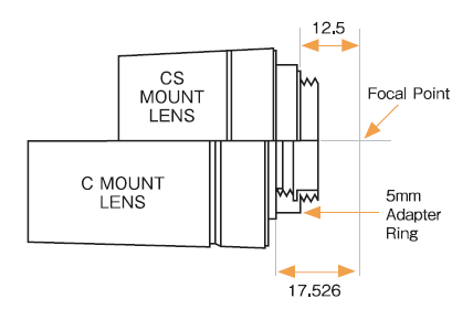 CS接口是監控行業較為(wei)常用(yong)的一種接(jie)口,其法(fa)蘭(lan)距(ju)(法(fa)蘭(lan)面距(ju)離(li)感光芯片的距(ju)離(li))為(wei)12.526mm,螺(luo)紋規格:直徑1英(ying)寸,螺(luo)距(ju)1-32UNF;