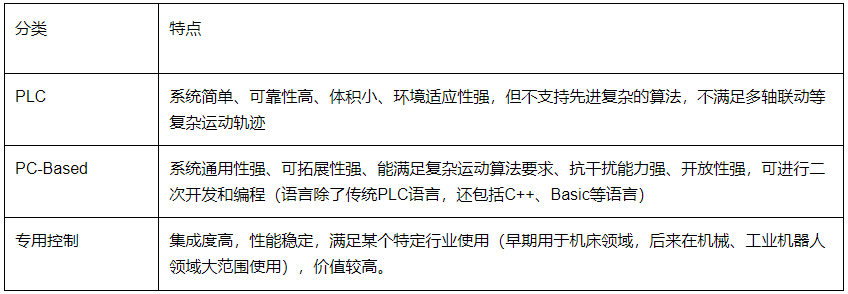 此(ci)時,控制(zhi)(zhi)器的(de)種(zhong)類開始層出不窮,目前控制(zhi)(zhi)器有三(san)種(zhong)主(zhu)要的(de)控制(zhi)(zhi)方式(shi):PLC控制(zhi)(zhi)、專用控制(zhi)(zhi)、PC-Based控制(zhi)(zhi)等,其特(te)點(dian)如表1.
