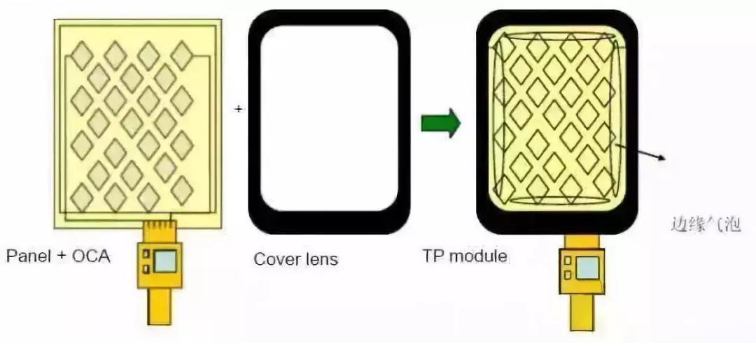 將FPC bonding后的(de)Sensor與(yu)cover glass貼(tie)合在一(yi)起,依據所用(yong)膠材的(de)不同,目前有兩種(zhong)貼(tie)合方式,一(yi)種(zhong)是OCA貼(tie)合,一(yi)種(zhong)是OCR貼(tie)合。