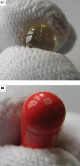 圖3:紫外線激光(guang)標記(ji)的軟(ruan)膠囊(a)和硬膠囊(b)。