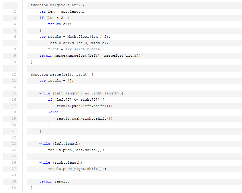 歸(gui)并(bing)排(pai)序是(shi)一(yi)種穩定的(de)排(pai)序方法。和選(xuan)擇排(pai)序一(yi)樣,歸(gui)并(bing)排(pai)序的(de)性能不受輸入(ru)數(shu)據的(de)影響,但表現比選(xuan)擇排(pai)序好的(de)多,因(yin)為始終都是(shi)O(nlogn)的(de)時間復雜度。代(dai)價是(shi)需要(yao)額(e)外(wai)的(de)內(nei)存(cun)空間。