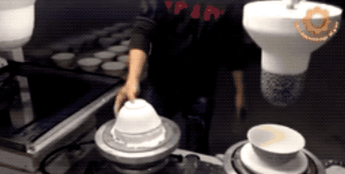 如(ru)果碗不只有一個(ge)花色,那咋辦?就(jiu)和開頭的馬克杯一樣,同時(shi)開三(san)臺機(ji)器,然后一層(ceng)一層(ceng)地進(jin)行移印。
