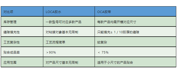 優點:可以(yi)粘接曲面或者不(bu)平(ping)整表(biao)面材料,對油墨厚度(du)不(bu)敏感(gan),易(yi)返工(gong),成本(ben)較OCA低。