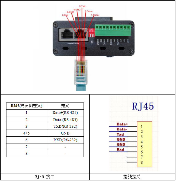 RS-485 模(mo)(mo)(mo)塊和(he)(he)光(guang)源控(kong)制器的(de)(de) 485 連(lian)接時(shi),需要注意,最好將 485 模(mo)(mo)(mo)塊的(de)(de)地(di)和(he)(he)光(guang)源控(kong)制器的(de)(de)模(mo)(mo)(mo)塊地(di)接在一(yi)起。如下圖(tu)。除(chu)了(le) 485 的(de)(de) A 和(he)(he) B 對接之外,還需要將 485 模(mo)(mo)(mo)塊的(de)(de) GND 和(he)(he)光(guang)源控(kong)制器的(de)(de) GND(即外部電源的(de)(de) 0V)接一(yi)起 。