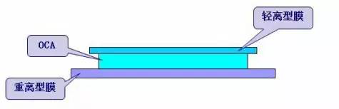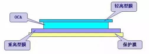 2. 重離型+ O C A膠+加輕離型, 此工(gong)藝(yi)同樣需要換(huan)膜, 只是(shi)(shi)少層保(bao)護膜,是(shi)(shi)目前常用的方式。