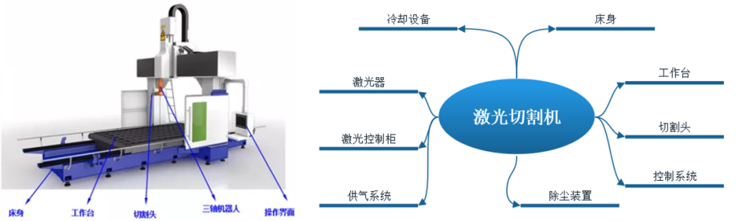 激光切割設備激(ji)光(guang)切(qie)割的設備大體主要由以下(xia)幾個部(bu)分(fen)組成:床身、工作(zuo)臺、切(qie)割頭、控制系統(tong)、激(ji)光(guang)控制柜、激(ji)光(guang)器、冷(leng)卻設備、除塵裝置(zhi)、供氣系統(tong)等。