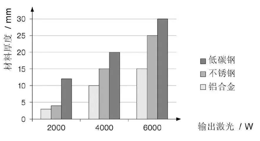 輸出功率選擇不同材料及不同厚度需要熔化的能量不同,所需的激光器輸出功率也不同。生產時需要平衡生產速度及質量,選擇設置合適的輸出功率及切割速度,保證切割區域能有恰當的能量,材料能被有效熔融并被即使吹走。
