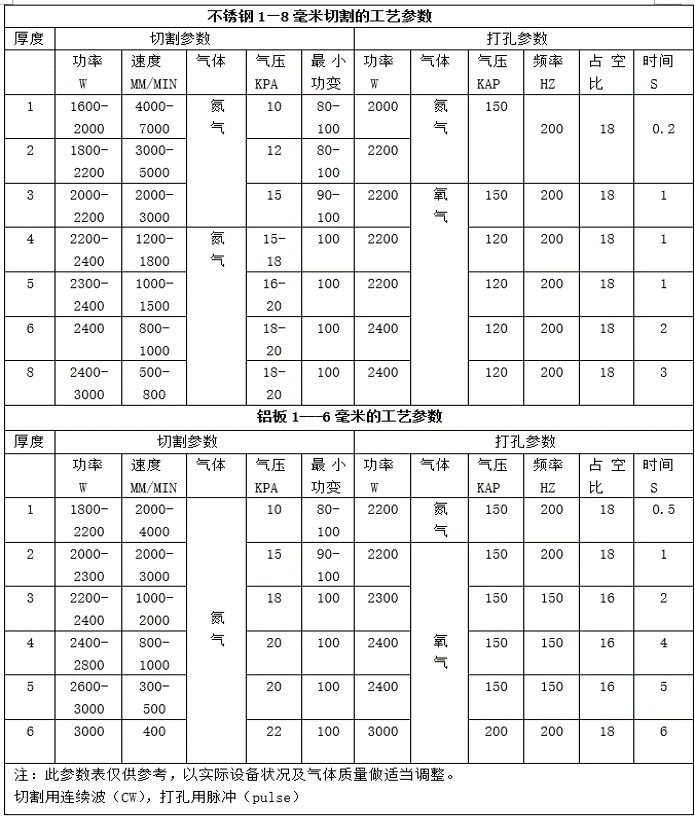 下圖是是Rofin DC030激光器針對碳鋼(gang)和(he)不銹鋼(gang)的參(can)考參(can)數: