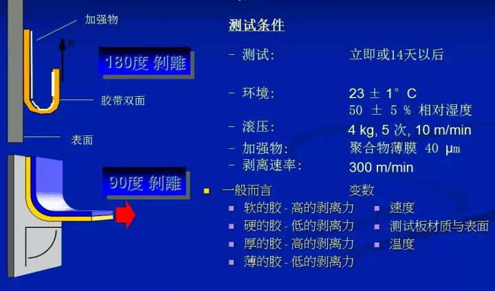 一般情況(kuang)下,影(ying)響靜態剝離粘性(xing)主要有負重、測試板材主與其(qi)表面(mian)性(xing)質、溫度等(deng)。