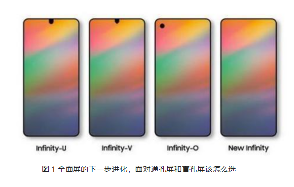 隨著智能顯示(shi)(shi)的(de)(de)(de)(de)飛速(su)發(fa)展,消(xiao)費者對顯示(shi)(shi)設備(bei)顏值的(de)(de)(de)(de)追(zhui)求(qiu)越(yue)(yue)來(lai)(lai)越(yue)(yue)高。試想我(wo)們的(de)(de)(de)(de)手(shou)機(ji)屏幕(mu)點亮(liang)時是(shi)(shi)一塊(kuai)顯示(shi)(shi)無死角的(de)(de)(de)(de)顯示(shi)(shi)屏那自然(ran)是(shi)(shi)極(ji)好的(de)(de)(de)(de),所以偏執(zhi)的(de)(de)(de)(de)消(xiao)費者追(zhui)求(qiu)極(ji)致的(de)(de)(de)(de)的(de)(de)(de)(de)屏占比(bi);屏下指紋技術(shu)(shu)及聽(ting)筒隱(yin)藏設計的(de)(de)(de)(de)出現,讓全(quan)面屏技術(shu)(shu)日(ri)趨成熟,所以隱(yin)藏攝像(xiang)頭(tou)成為(wei)我(wo)們追(zhui)求(qiu)完(wan)美顯示(shi)(shi)的(de)(de)(de)(de)最(zui)(zui)后拼(pin)圖。從iphone X最(zui)(zui)早的(de)(de)(de)(de)劉(liu)海屏到夏普的(de)(de)(de)(de)美人(ren)尖(jian),到OPPO水滴屏,再到三星和華為(wei)的(de)(de)(de)(de)打(da)孔屏(通孔和盲孔),可謂百花齊放,百家(jia)爭(zheng)鳴的(de)(de)(de)(de)全(quan)面屏時代。如(ru)下圖1所示(shi)(shi):人(ren)們對于手(shou)機(ji)顯示(shi)(shi)的(de)(de)(de)(de)探索腳步(bu)從未停止過。截止目前來(lai)(lai)看,打(da)孔實現對前置攝像(xiang)頭(tou)的(de)(de)(de)(de)安(an)放,可以進一步(bu)提升手(shou)機(ji)正面顯示(shi)(shi)區域的(de)(de)(de)(de)利用面積,可能是(shi)(shi)目前為(wei)止來(lai)(lai)說較為(wei)合理的(de)(de)(de)(de)方案。