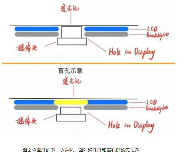 打(da)(da)孔(kong)(kong)方案(an)通(tong)俗來說就(jiu)是(shi)在(zai)(zai)屏(ping)(ping)幕上開了(le)孔(kong)(kong),分為(wei)通(tong)孔(kong)(kong)和(he)盲孔(kong)(kong)兩種打(da)(da)孔(kong)(kong)方式;眾所(suo)周知,手(shou)機的(de)(de)一塊屏(ping)(ping)幕有多層(ceng)結構。通(tong)孔(kong)(kong)的(de)(de)解決方案(an)是(shi)在(zai)(zai)屏(ping)(ping)幕的(de)(de)保(bao)護玻(bo)璃下(xia),所(suo)有的(de)(de)層(ceng)都穿孔(kong)(kong)(除了(le)最外(wai)面(mian)的(de)(de)蓋板(ban)玻(bo)璃),讓前置攝像頭(tou)穿過液晶層(ceng)以及背光(guang)模組嵌入(ru)孔(kong)(kong)洞中,而(er)盲孔(kong)(kong)則是(shi)保(bao)留了(le)液晶和(he)蓋板(ban)不打(da)(da)孔(kong)(kong)。(如下(xia)圖(tu)2示意圖(tu));