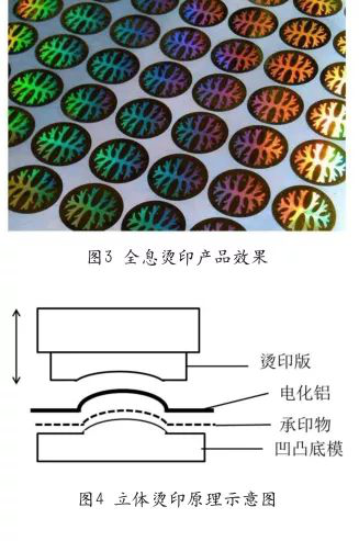 立體(ti)燙(tang)(tang)印(yin)又稱(cheng)為凹凸燙(tang)(tang)印(yin),它是一(yi)種將(jiang)燙(tang)(tang)印(yin)和壓凹凸一(yi)次完(wan)成的工藝技(ji)術(shu),燙(tang)(tang)印(yin)原理如圖(tu)4。燙(tang)(tang)印(yin)時,需(xu)制(zhi)(zhi)作精密的立體(ti)燙(tang)(tang)印(yin)版和與之相對應的底(di)模。立體(ti)燙(tang)(tang)印(yin)版一(yi)般采(cai)用(yong)(yong)銅(tong)、鋅、鎂等金(jin)屬(shu)材質,利用(yong)(yong)電腦控(kong)制(zhi)(zhi)軟(ruan)件進行(xing)三維雕(diao)刻,現常用(yong)(yong)的制(zhi)(zhi)版方(fang)法(fa)為電腦數控(kong)雕(diao)刻制(zhi)(zhi)版(CNC),該方(fang)法(fa)制(zhi)(zhi)作的燙(tang)(tang)印(yin)版使燙(tang)(tang)印(yin)產品質量穩定、定位準(zhun)確、圖(tu)案邊緣清晰、耐印(yin)率高(gao)等。底(di)膜(mo)一(yi)般采(cai)用(yong)(yong)石膏(gao)或新型高(gao)分子(zi)材料制(zhi)(zhi)得,在立體(ti)燙(tang)(tang)印(yin)過程中(zhong),由(you)于(yu)燙(tang)(tang)印(yin)凹版是處(chu)于(yu)加熱(re)狀態(tai),會產生一(yi)定的膨脹變量,而底(di)模是處(chu)于(yu)室溫狀態(tai),所以在燙(tang)(tang)印(yin)過程中(zhong)要考慮到與燙(tang)(tang)印(yin)版的易合精確度。