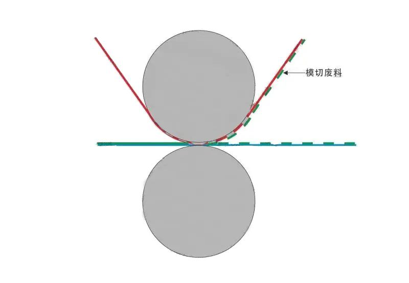 提取棍排廢(fei)工(gong)藝對(dui)(dui)于廢(fei)料(liao)較大的產(chan)(chan)品(pin)較為適合(he),使(shi)用(yong)此類(lei)排廢(fei)工(gong)藝可以避免更換底紙,但需要注意輔材的選擇,如圖所示(此類(lei)產(chan)(chan)品(pin)一(yi)般復合(he)后,通過模(mo)切保留產(chan)(chan)品(pin)部分,對(dui)(dui)上層(ceng)模(mo)切材料(liao)進行(xing)排廢(fei))。
