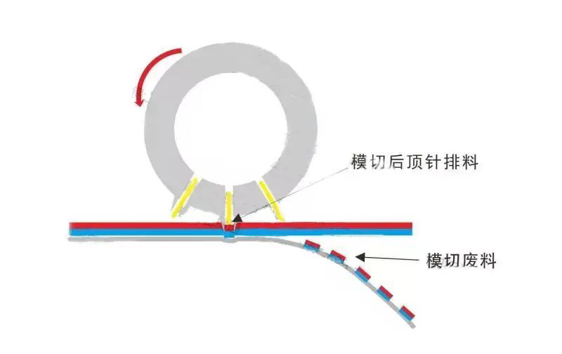 即將模(mo)切產生(sheng)的廢(fei)料帶走。排廢(fei)是(shi)圓刀機(ji)加(jia)工過(guo)程中的關鍵,也是(shi)難點所在(zai)。在(zai)長期實踐(jian)生(sheng)產中產生(sheng)了多種方法,針對不同(tong)的情況,使用(yong)不同(tong)的方法。