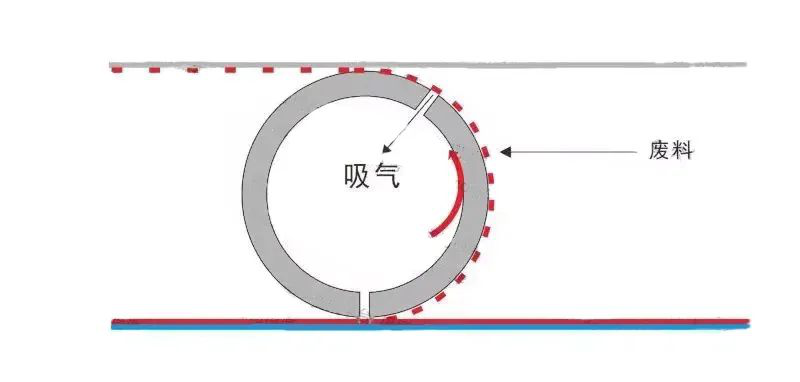 吸(xi)(xi)氣(qi)刀(dao)(dao)通(tong)過大功率吸(xi)(xi)氣(qi)裝置連(lian)(lian)接刀(dao)(dao)體(ti),產生吸(xi)(xi)力將模切的(de)產品(pin)廢(fei)(fei)(fei)(fei)(fei)料(liao)吸(xi)(xi)附(fu)在表面的(de)刀(dao)(dao)腔(qiang)上,再(zai)用排(pai)廢(fei)(fei)(fei)(fei)(fei)料(liao)帶(dai)排(pai)走(zou),使一些較難排(pai)除的(de)大片(pian)廢(fei)(fei)(fei)(fei)(fei)料(liao)排(pai)廢(fei)(fei)(fei)(fei)(fei)順暢;吸(xi)(xi)廢(fei)(fei)(fei)(fei)(fei)刀(dao)(dao)可(ke)將模切廢(fei)(fei)(fei)(fei)(fei)料(liao)吸(xi)(xi)入(ru)刀(dao)(dao)體(ti)內部(bu),再(zai)從軸頭一端連(lian)(lian)接的(de)吸(xi)(xi)氣(qi)裝置吸(xi)(xi)出(chu),在節約材(cai)料(liao)、降低刀(dao)(dao)刃的(de)損傷率上有良好的(de)效(xiao)果。經過驗證(zheng),直徑在3~10mm之(zhi)間廢(fei)(fei)(fei)(fei)(fei)料(liao)可(ke)以吸(xi)(xi)廢(fei)(fei)(fei)(fei)(fei)效(xiao)果是最(zui)好的(de)。