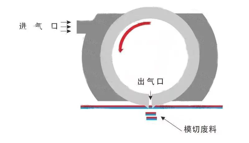 吹氣(qi)式(shi)排(pai)廢(fei)(fei)圓刀也叫吹氣(qi)清廢(fei)(fei)刀,氣(qi)沖式(shi)排(pai)廢(fei)(fei)圓刀。是通過高壓(ya)空(kong)氣(qi)作用將廢(fei)(fei)料(liao)(liao)吹離(li)模切材料(liao)(liao)和刀腔,防止(zhi)廢(fei)(fei)料(liao)(liao)卡在刀腔并進行排(pai)廢(fei)(fei)的(de)(de)一(yi)(yi)種圓刀工藝(yi)。在刀體側端安(an)裝一(yi)(yi)塊導氣(qi)卡環,將高壓(ya)空(kong)氣(qi)精確的(de)(de)引導到對應的(de)(de)排(pai)廢(fei)(fei)氣(qi)孔上把整排(pai)廢(fei)(fei)料(liao)(liao)吹出(chu),一(yi)(yi)般還會配(pei)合吸廢(fei)(fei)盒(he)使(shi)用,更好(hao)的(de)(de)收集模切出(chu)來的(de)(de)廢(fei)(fei)料(liao)(liao)。