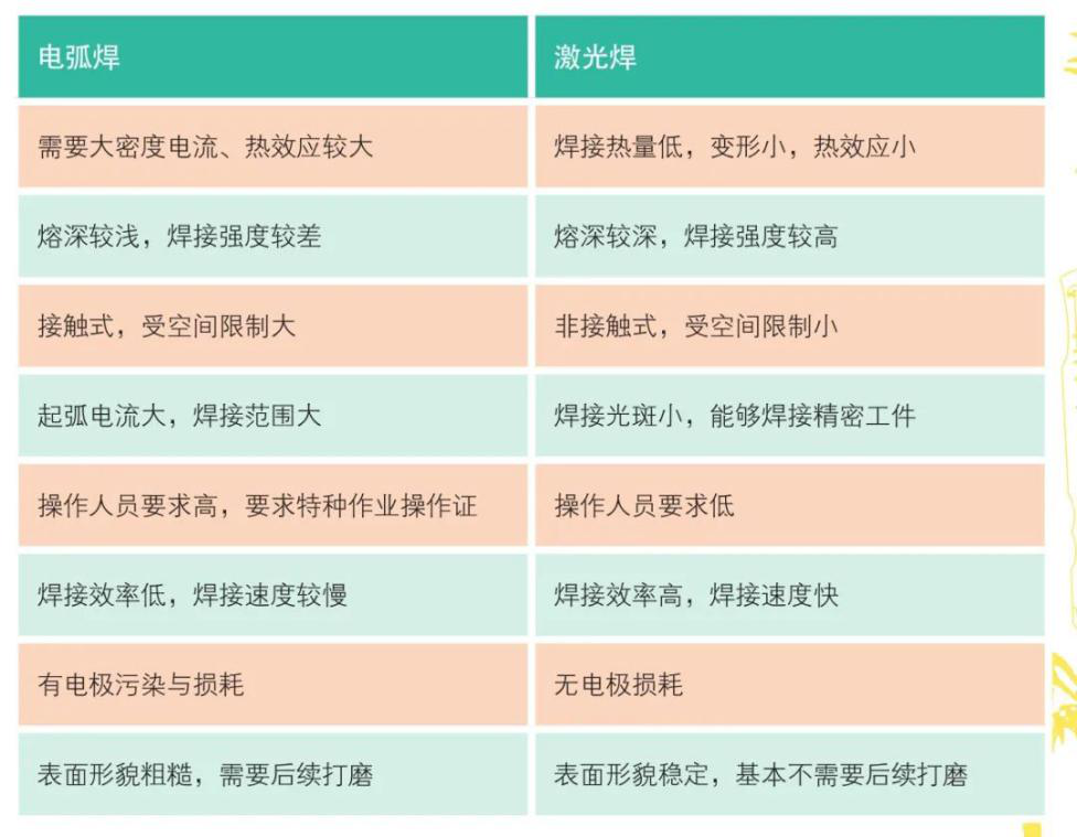 表1 激(ji)光焊接與(yu)電弧焊接特點比較(jiao)