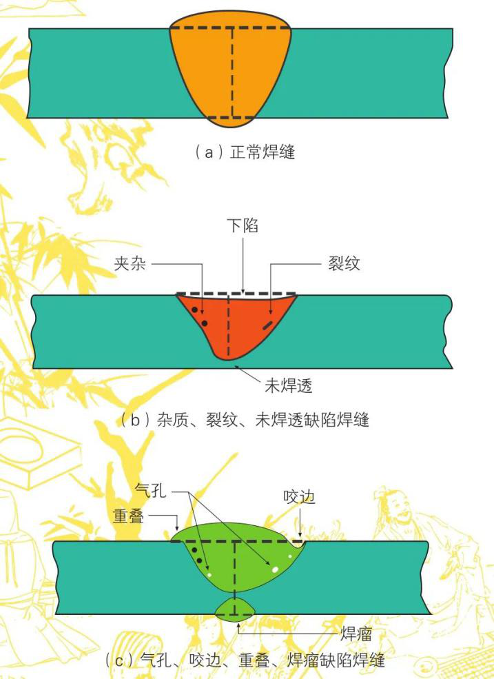 在(zai)特(te)定的(de)工作環境中,焊接(jie)件存在(zai)氣(qi)孔、裂紋、雜質、咬邊(bian)等(deng)缺陷,很可能(neng)會引發(fa)嚴重的(de)安全事故,如(ru)有的(de)產品對氣(qi)密(mi)性(xing)、是(shi)否漏水等(deng)有嚴格要(yao)求。正(zheng)常焊縫、存在(zai)缺陷焊縫示意圖如(ru)圖3所(suo)示。