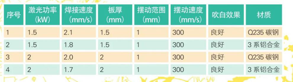厚(hou)度為1.5mm的(de)Q235碳鋼板(ban)的(de)擺動焊接工藝參數見表2。